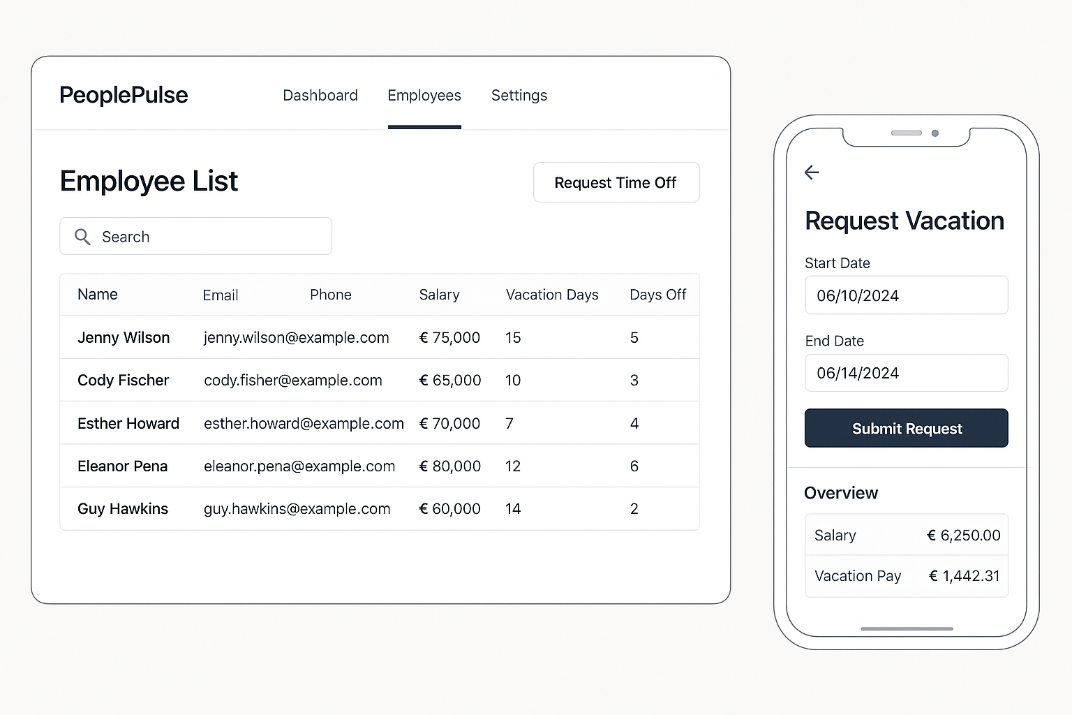 Դիմել դեմո տարբերակի համարՊահպանեք անունը, էլ․ փոստը, հեռախոսը, աշխատավարձը և արձակուրդի տվյալները անվտանգ` մեկ հարթակում։